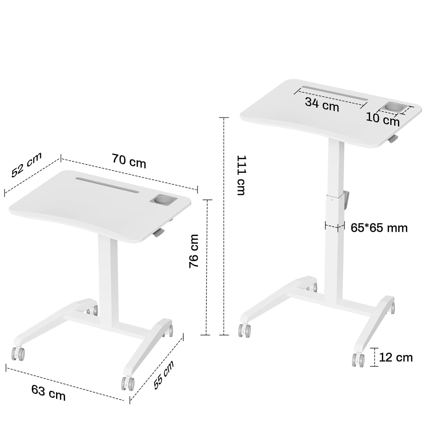 Die geräumige Tischfläche von 70 cm x 52 cm bietet Platz für einen mobilen Schreibtisch mit Becherhalter und Schlitz für eine bessere Lagerung.